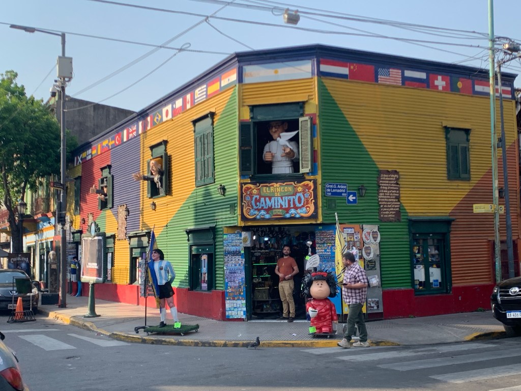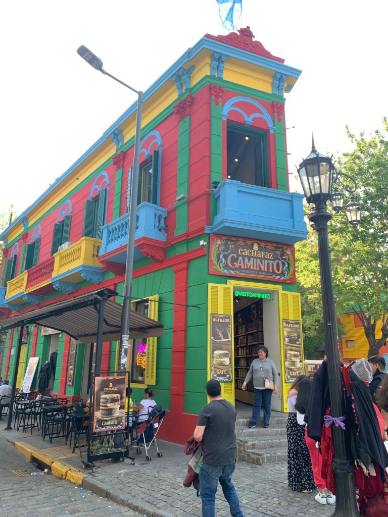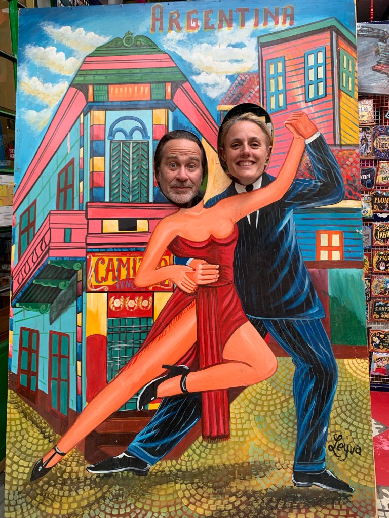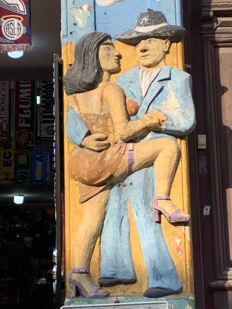 The school organise tours in various suburbs of BA. The first week we visited La Boca which is on the old port. It’s an area where all the immigrants arrived. The buildings are all painted different colours. It’s very touristic. Whilst I tried to look cool and aloof Sylvie entered into the spirit of the place.